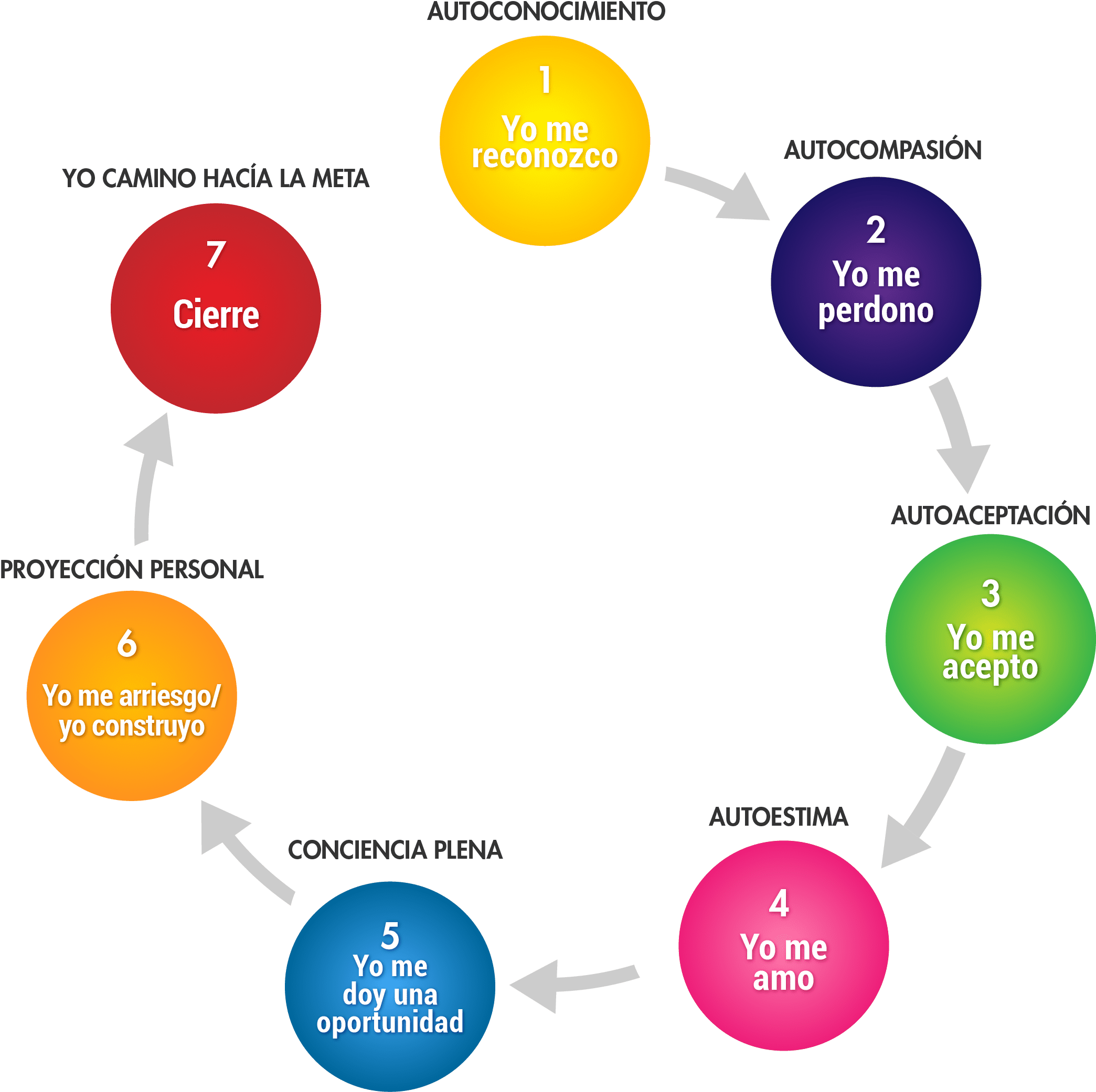 Hemos creado la siguiente ruta que los llevará a construir su proyecto de vida. A través de este viaje buscamos que inicien un proceso de autoconocimiento, en el cual otorgan valor a sus experiencias positivas y confrontan aquellas que generaron dolor, no por medio del rencor sino del perdón, lo que les llevará al camino de la aceptación, a reconocer todo aquello que no se puede cambiar y comprometerse con aquello que anhelan así sea diferente. Será como la herramienta principal hacia el amor propio, la toma de decisiones y el establecimiento de objetivos y metas, que denotan su proyección personal y los acerca a vivir una vida que vale la pena ser vivida y no como un componente objetivo, sino subjetivo.